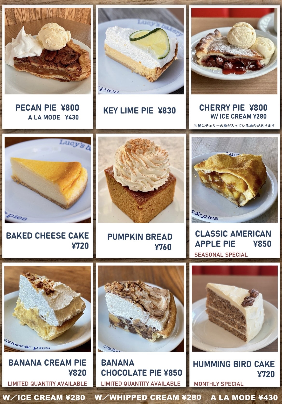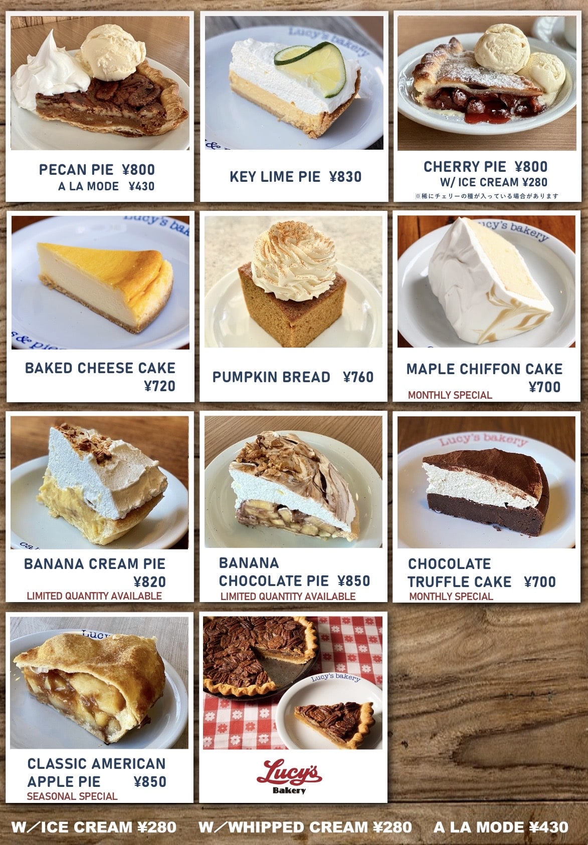Lucy's Bakeryではレギュラーケーキメニューに加えシーズンに合わせたおすすめのケーキやパイをご用意しています。